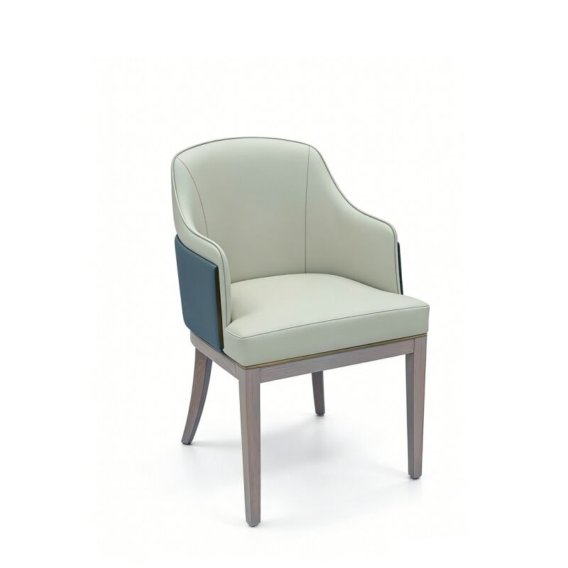 De rugleuning is naadloos geïntegreerd met ingebouwde roestvrijstalen bekleding.luxe touch die verfijning uitstraalt van zowel de voor- als achterkant.Gebouwd met een stevig massief houten frame, diteetstoelzorgt voor duurzame prestaties in commerciële omgevingen met veel verkeer.
